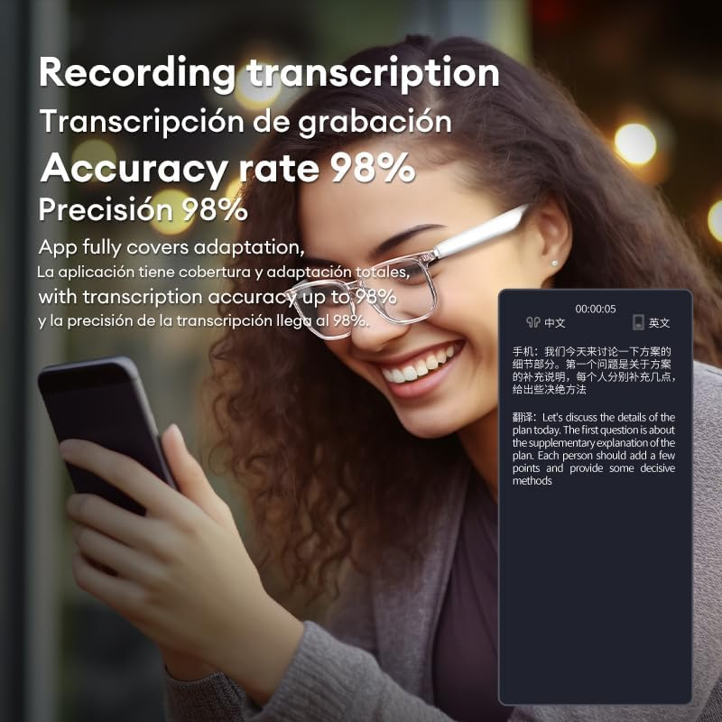 Communicate effortlessly in 160+ languages with 99% translation accuracy. These Bluetooth 5.4 AI Smart Glasses combine intelligent translation, immersive open-ear audio, and modern comfort — ideal for travel, business meetings, and daily wear.