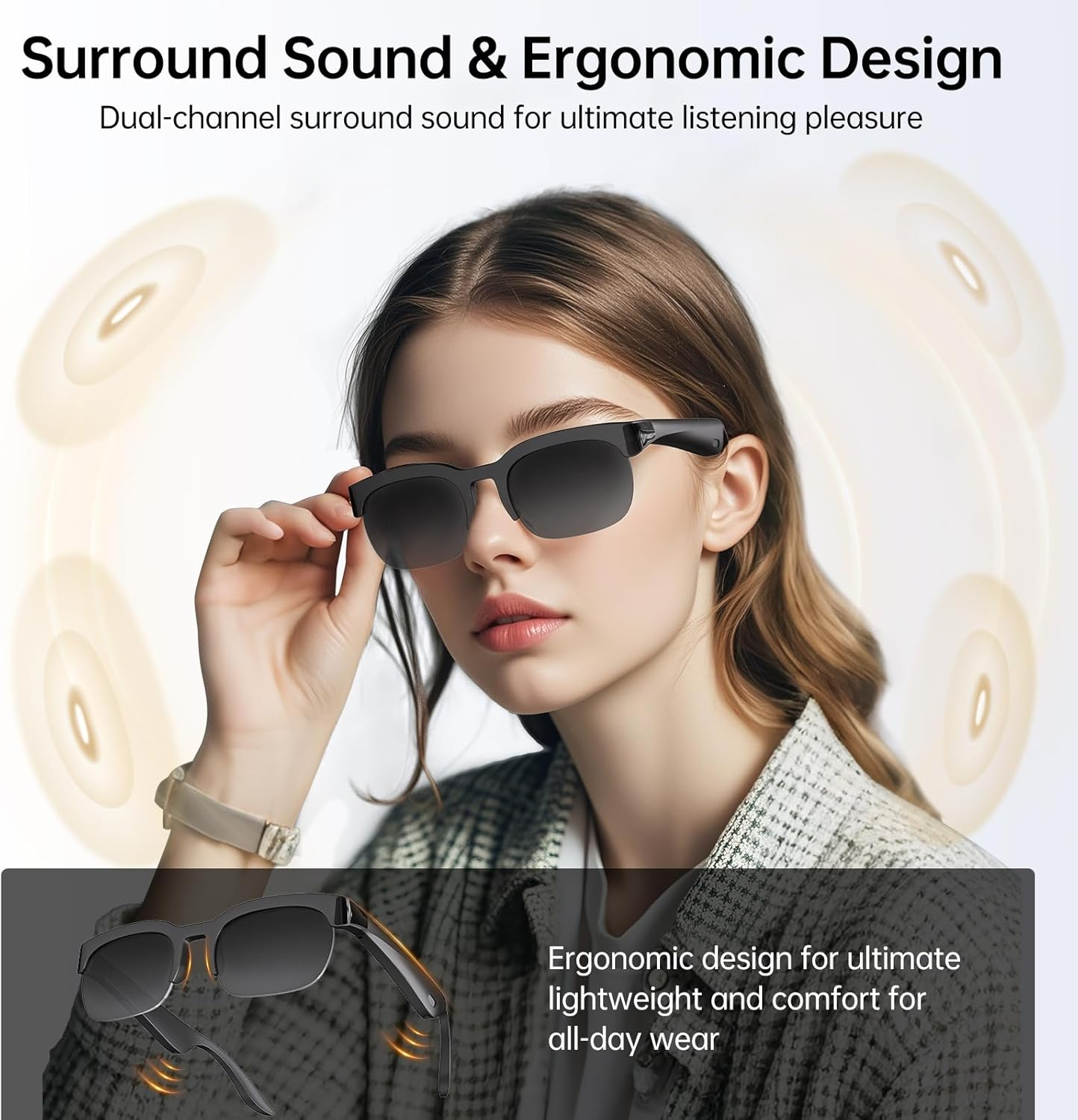 AI Smart Glasses V6.0 Translator 150+ Languages Bluetooth Music UV400 Waterproof