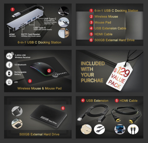 Revodok 6-in-1 USB C Hub 4K HDMI 100W PD Ethernet Adapter for Mac & iPad